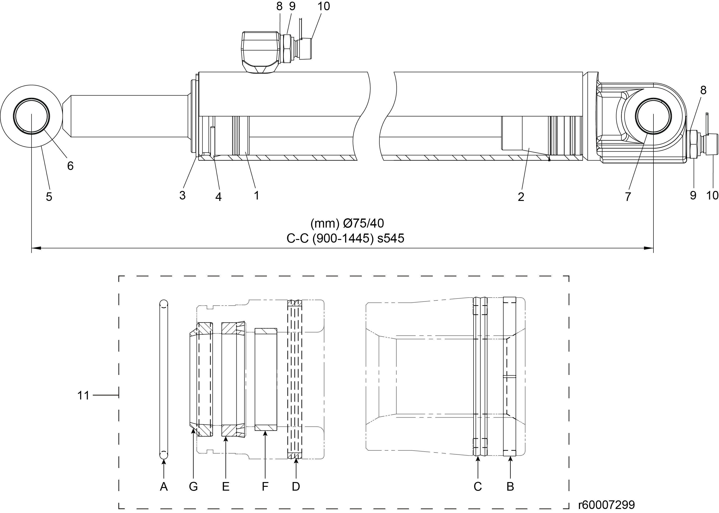60007299-1 - Zvedací válec - Alo Černá