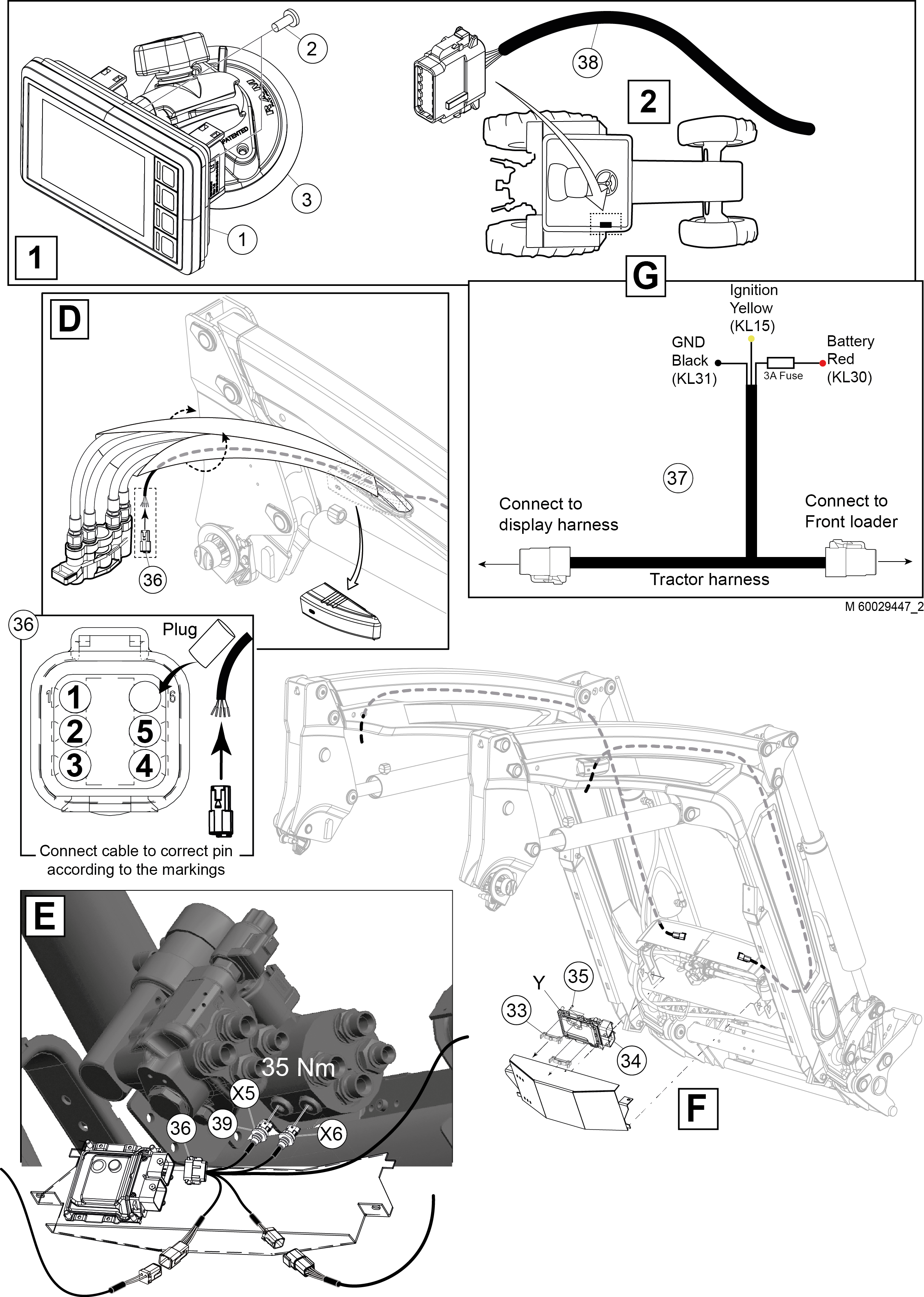 Display buttons right side of screen. Separate 6-pin Deutsch contact loader to tractor.