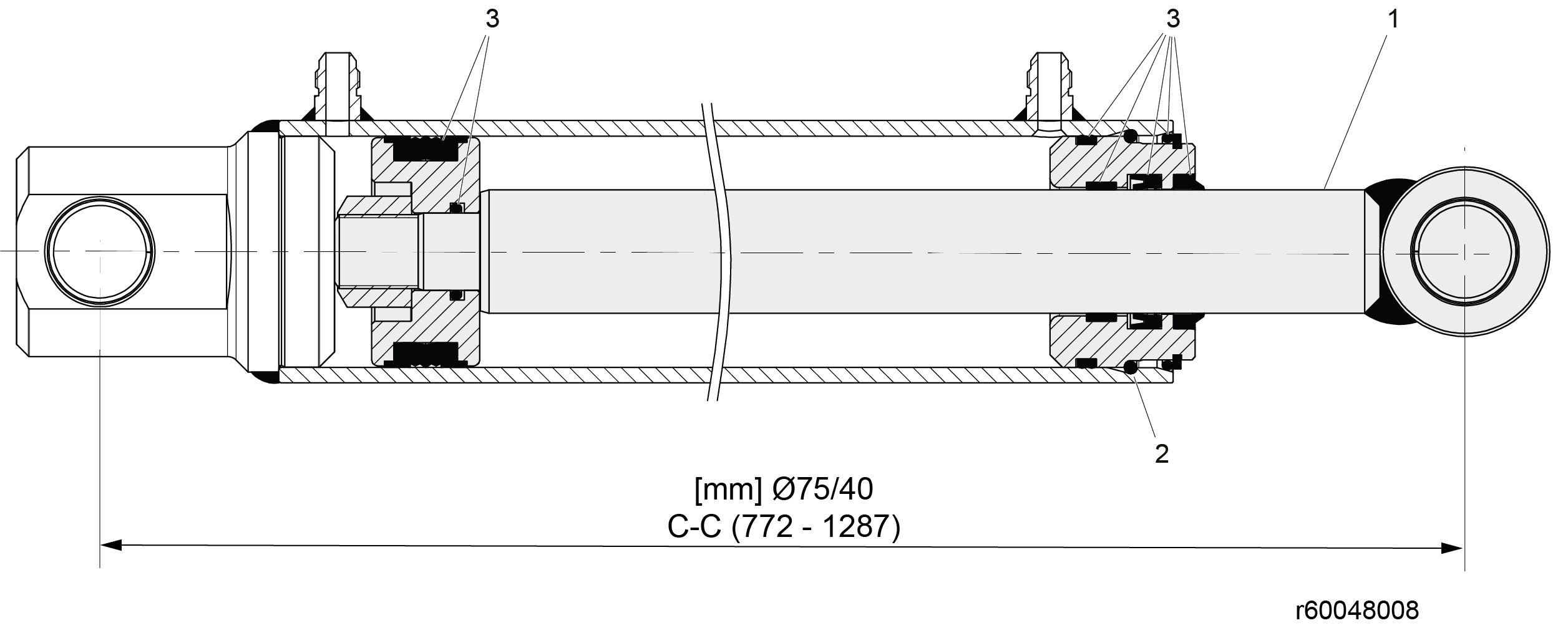 60048008-1 - Lift Cylinder - Glossy Black. Replaces 60009650.