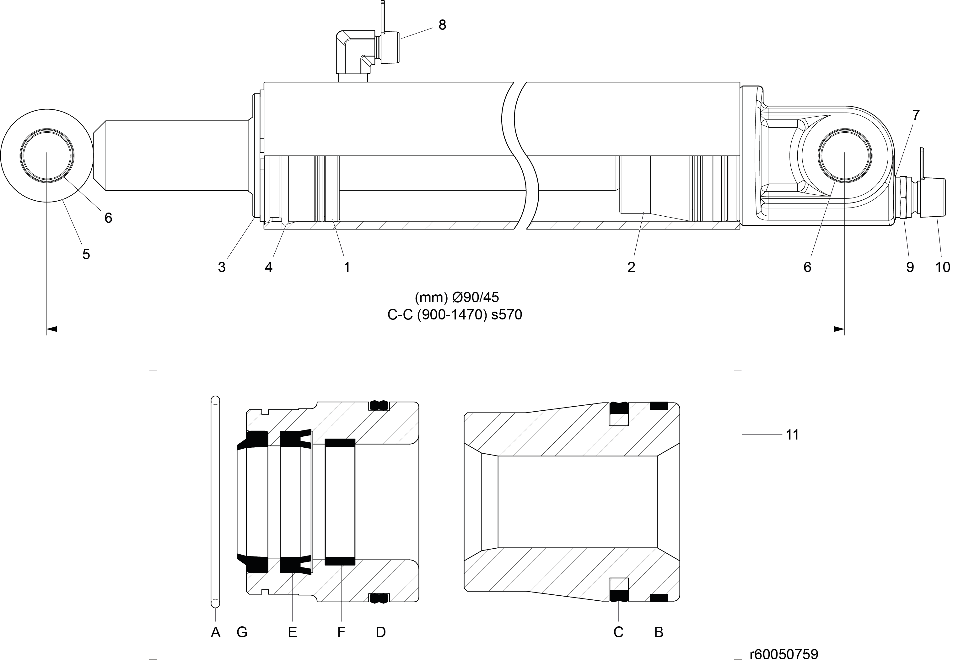 60050759-1 - Lift Cylinder - Glossy Black